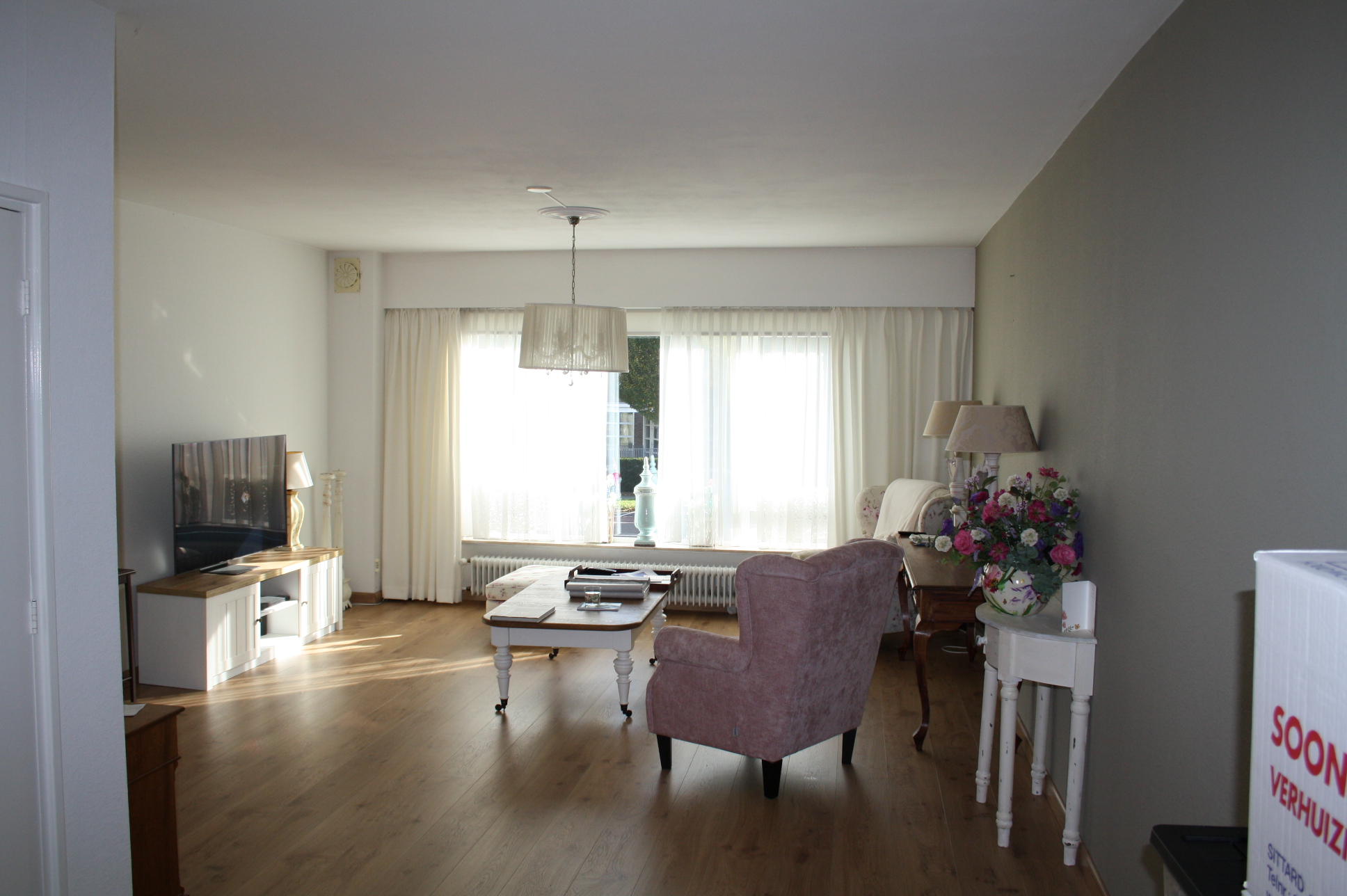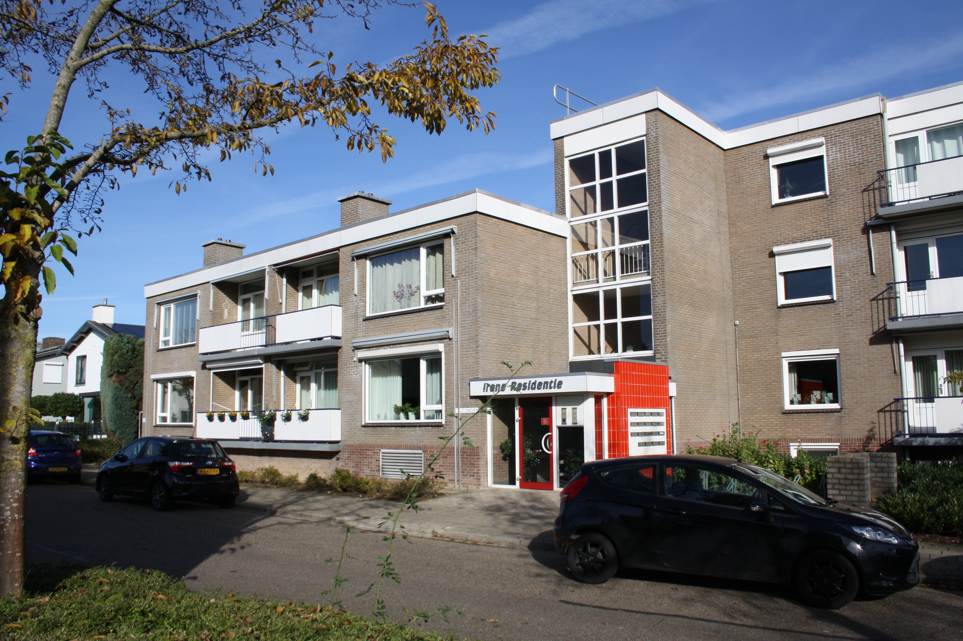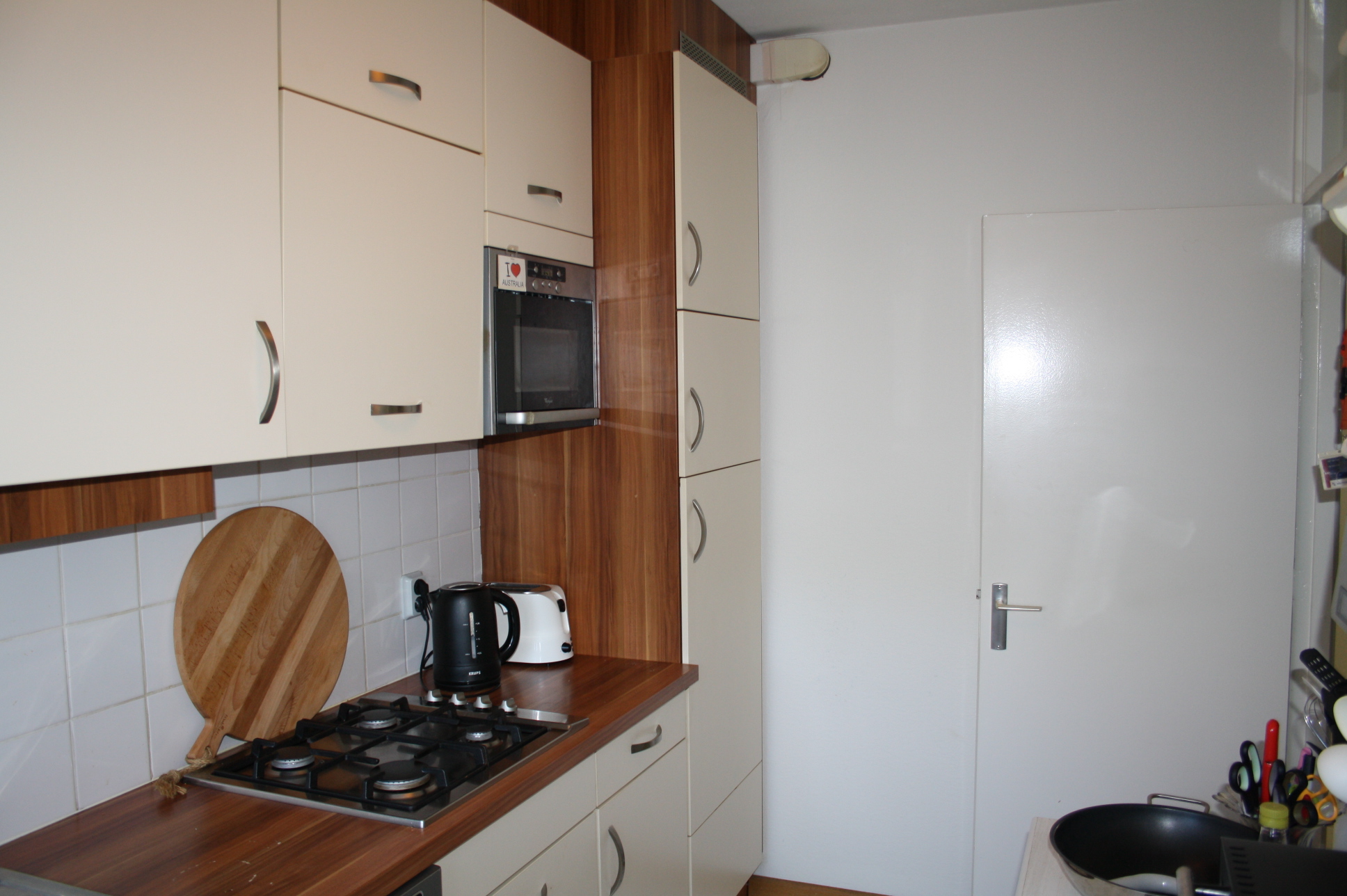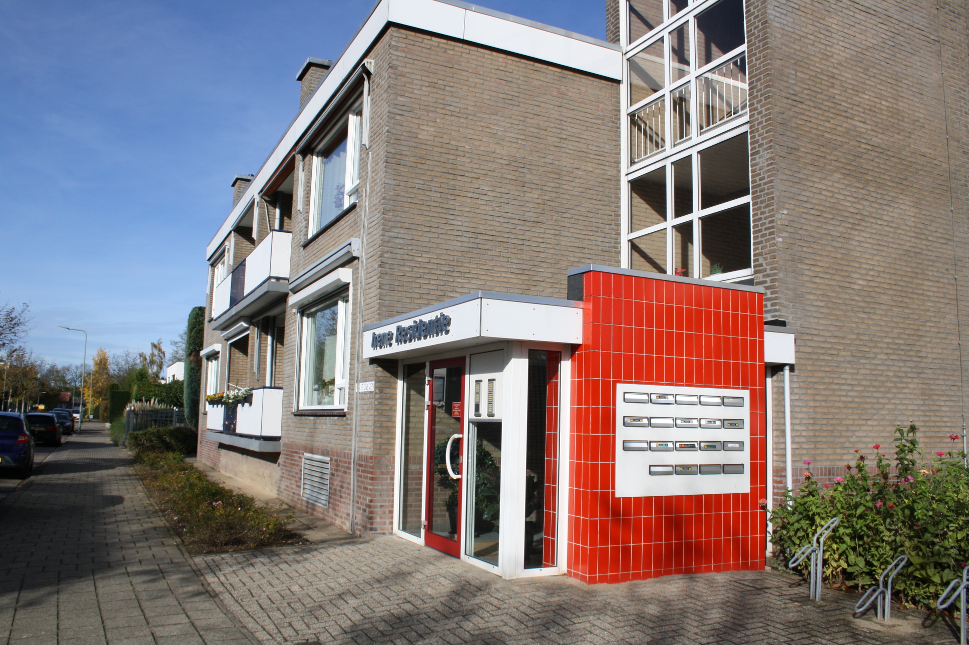 Hal/entree (circa 7m2) met garderobe nis. Geheel betegeld toilet. Woonkamer (zitgedeelte 4.60 x 5.36) en eetgedeelte (2.70 x 4.15) met mooi uitzicht over de voorgelegen groenvoorziening. Gesloten keuken (2.00 x 3.50) voorzien van moderne aanbouwkeuken met apparatuur (4-pits gaskookplaat, afzuiging, magnetron, koelkast, vaatwasser). 2 Slaapkamers:
