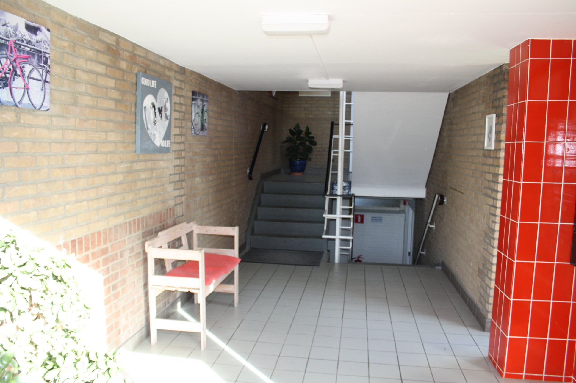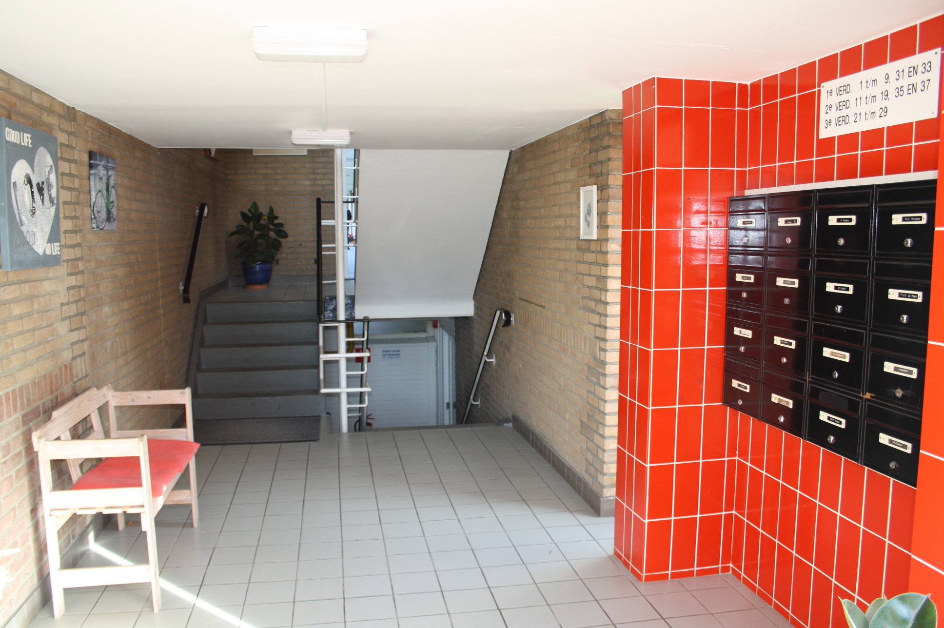 Gemeenschappelijke hal/entree. Trap naar split level omhoog.