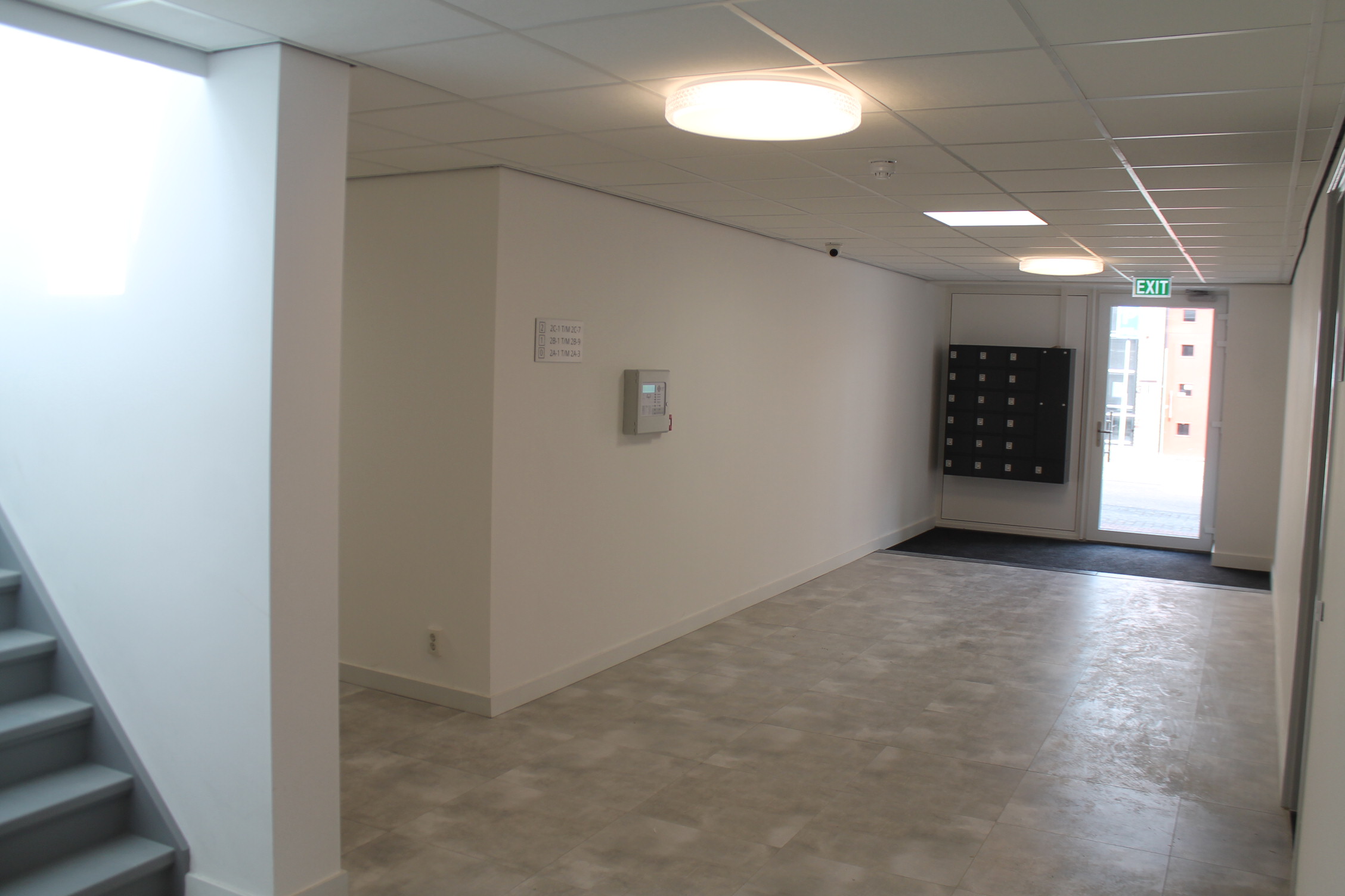 Ruime centrale hal/entree met toegang tot de lift het trappenhuis en de algemene fietsenstalling. Videobewaking, brievenbussen, automatische deuropener en videofoon.