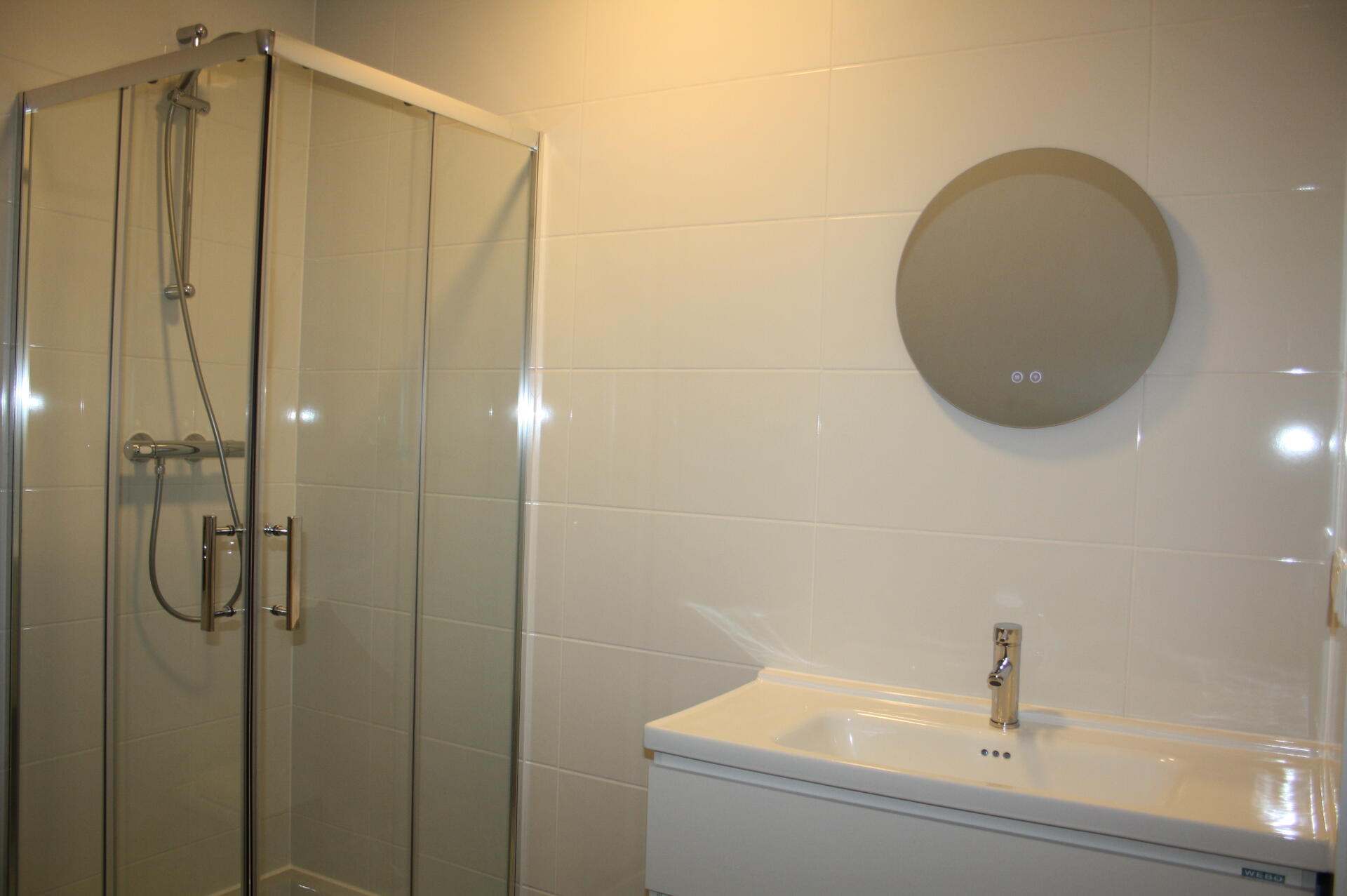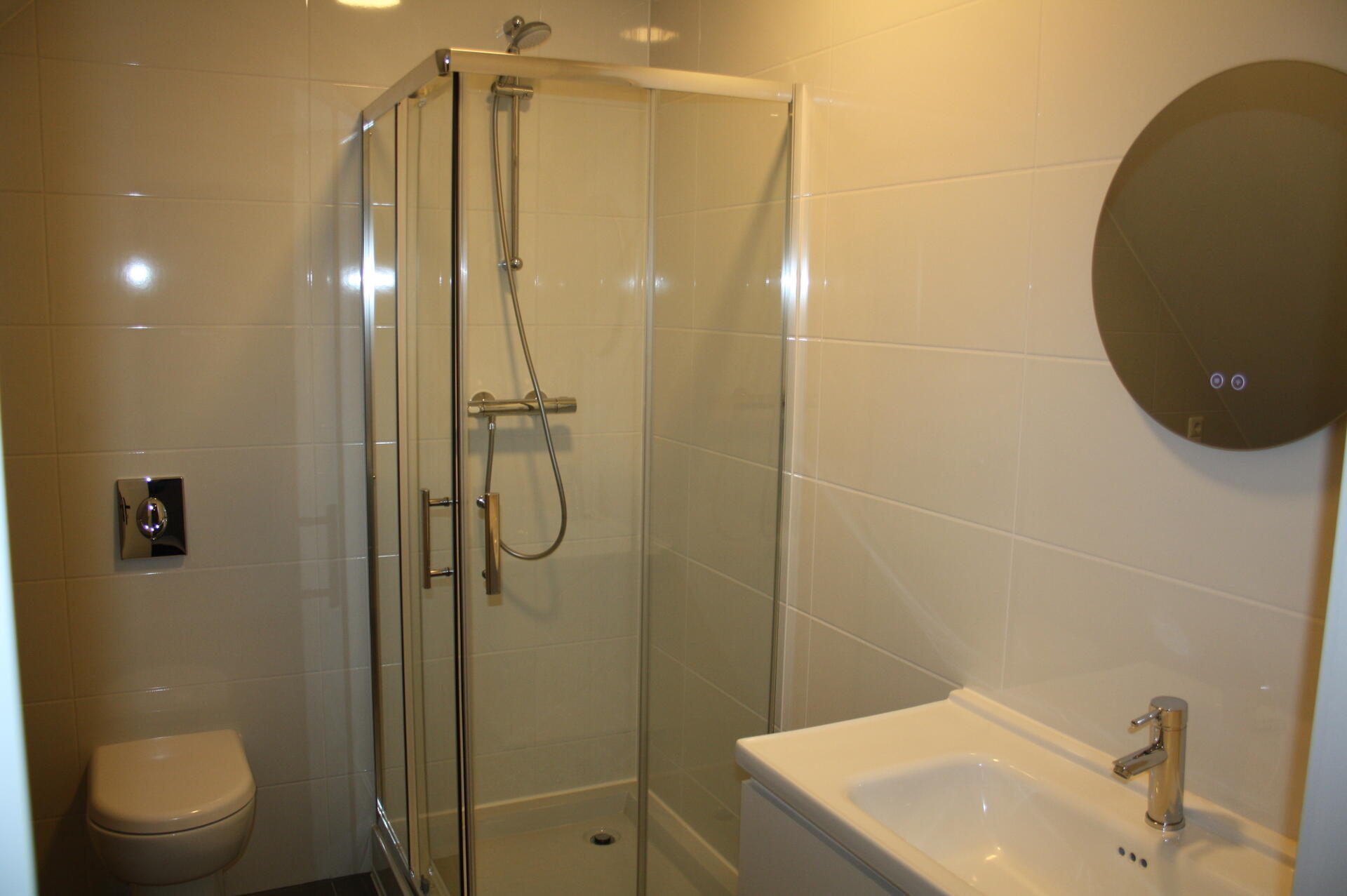 Appartement is voorzien van een doorlopende pvc-vloer en badkamer van tegelvloer.