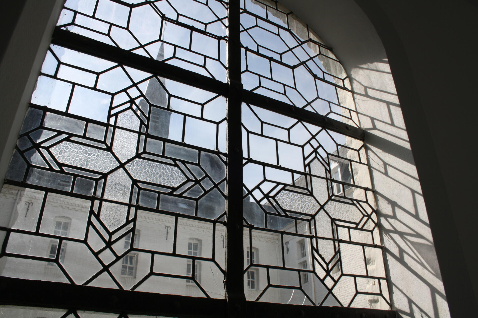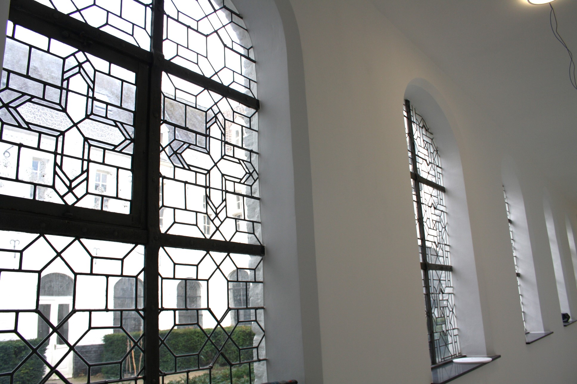 Gemeenschappelijke hoofdentree, deze entree biedt direct toegang tot het schitterende complex. De gangen hebben prachtige glas in loodramen met zicht op de binnenplaats en veel lichtinval. De gemeenschappelijke binnenplaats komt telkens terug en dient als het middelpunt van het authentieke complex.