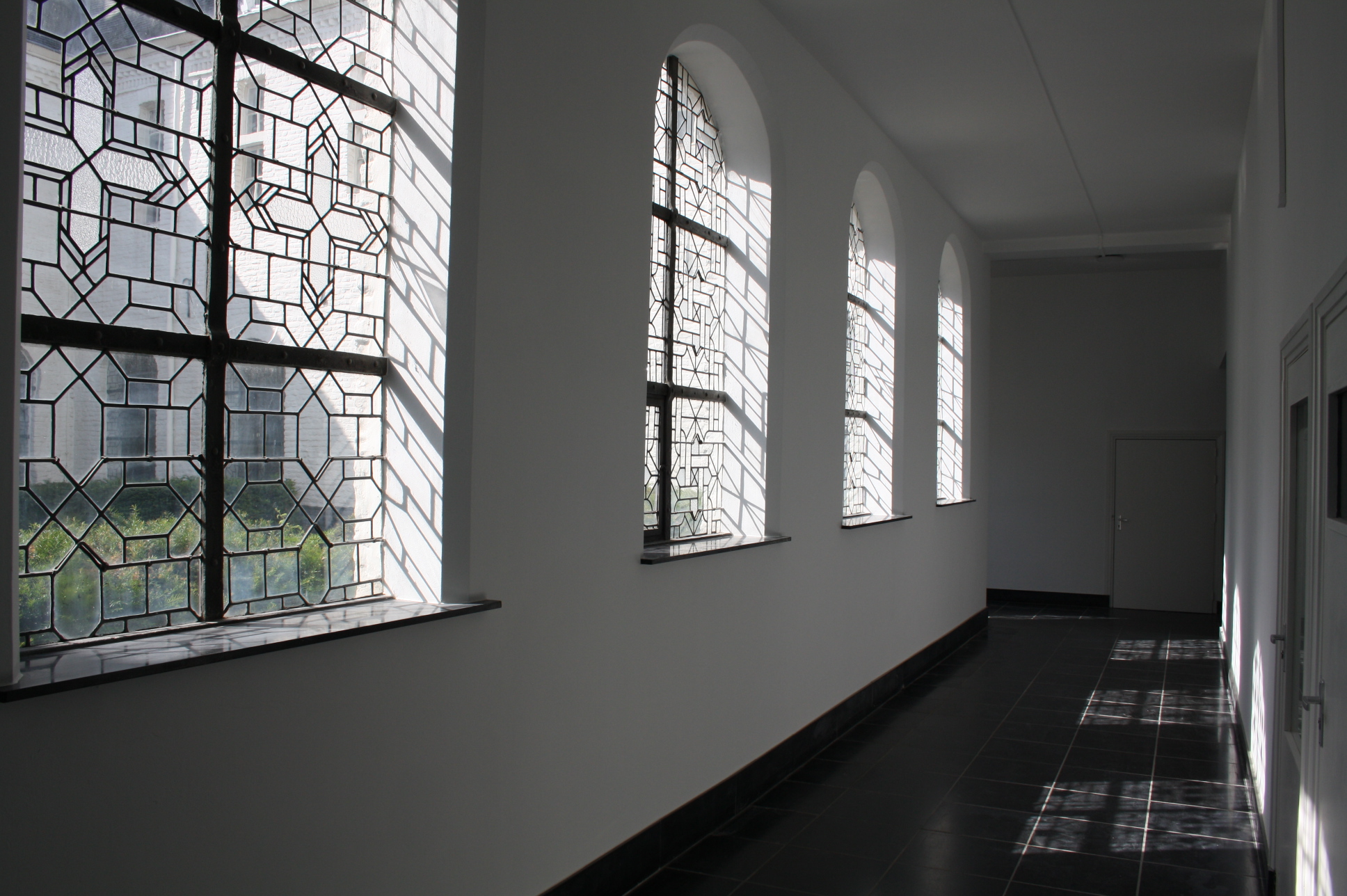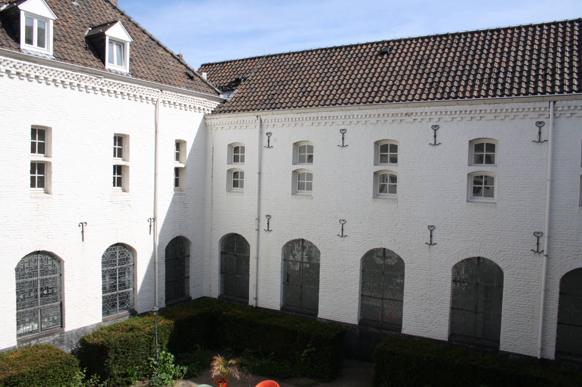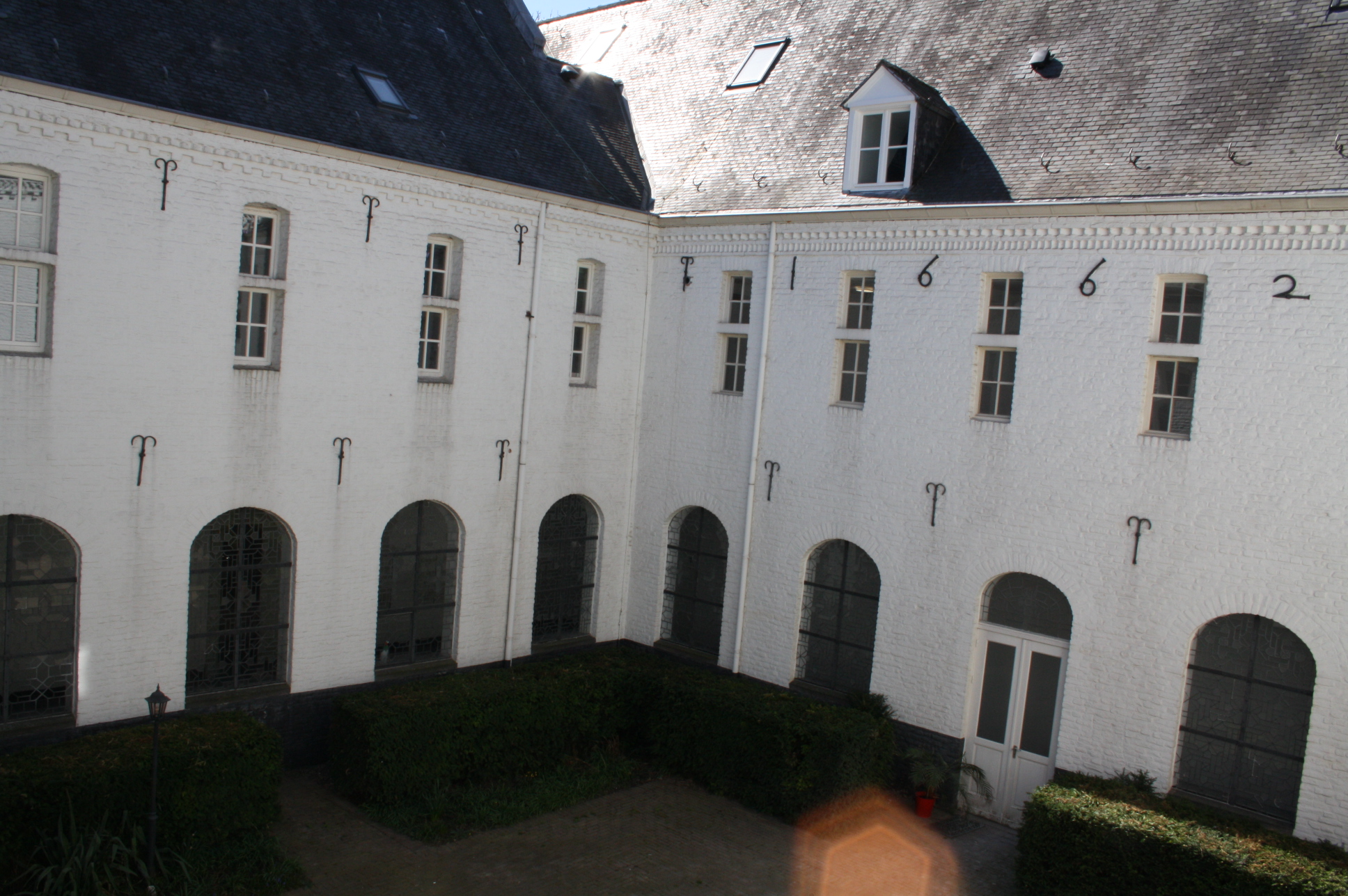 Gemeenschappelijke hoofdentree. Deze entree biedt direct toegang tot het schitterende complex. De gangen hebben zijn voorzien van glas in loodramen met zicht op de binnenplaats en geven veel lichtinval. De gemeenschappelijke binnenplaats komt telkens terug en dient als het middelpunt van het authentieke complex.
