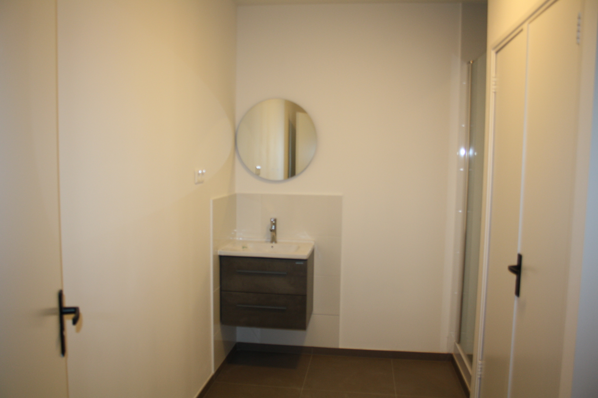 Appartement is voorzien van een doorlopende pvc-vloer en de badkamer van een tegelvloer.