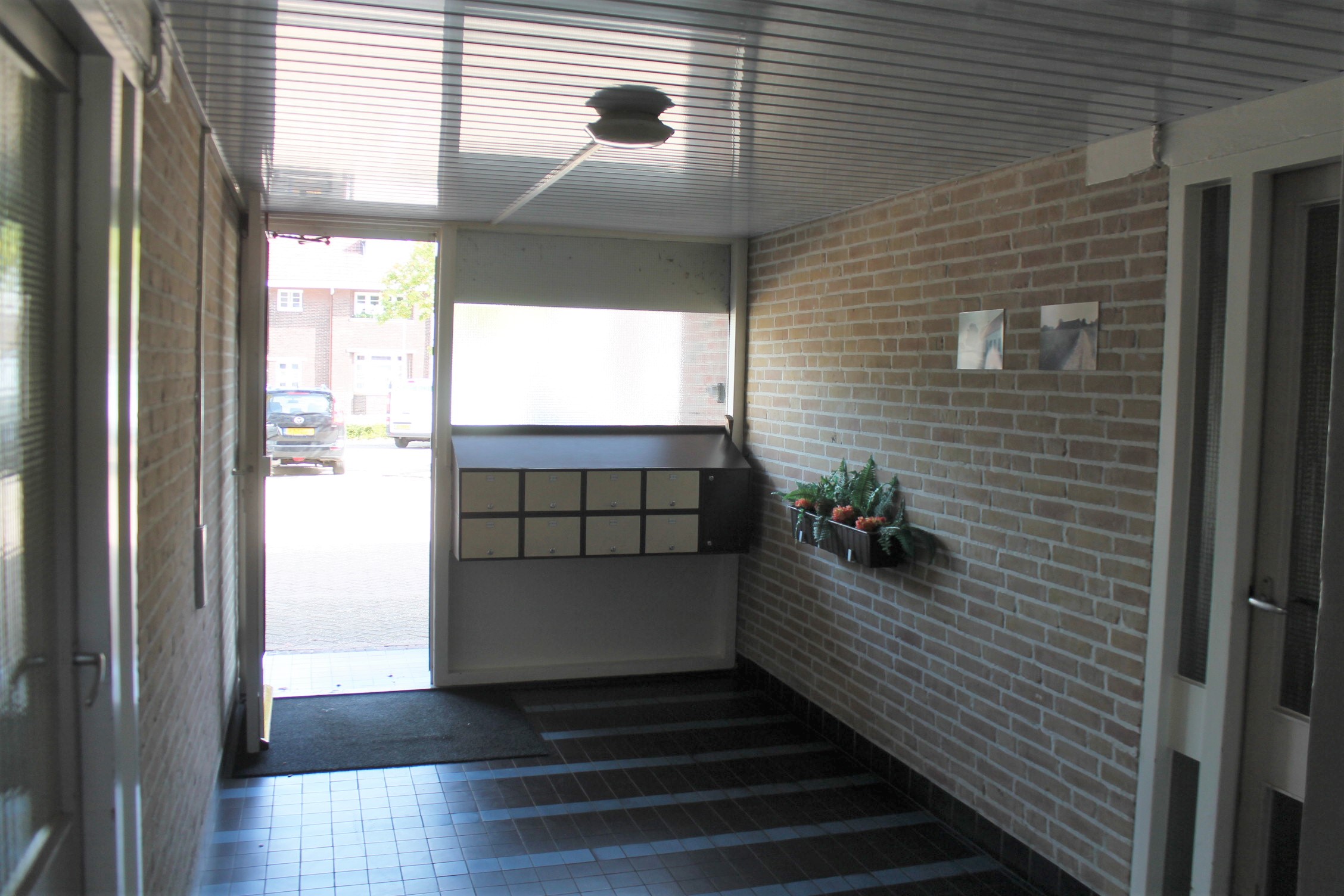 Gemeenschappelijke hal/entree met toegang tot eigen berging (3.85 x 1.65) en trappenhuis.