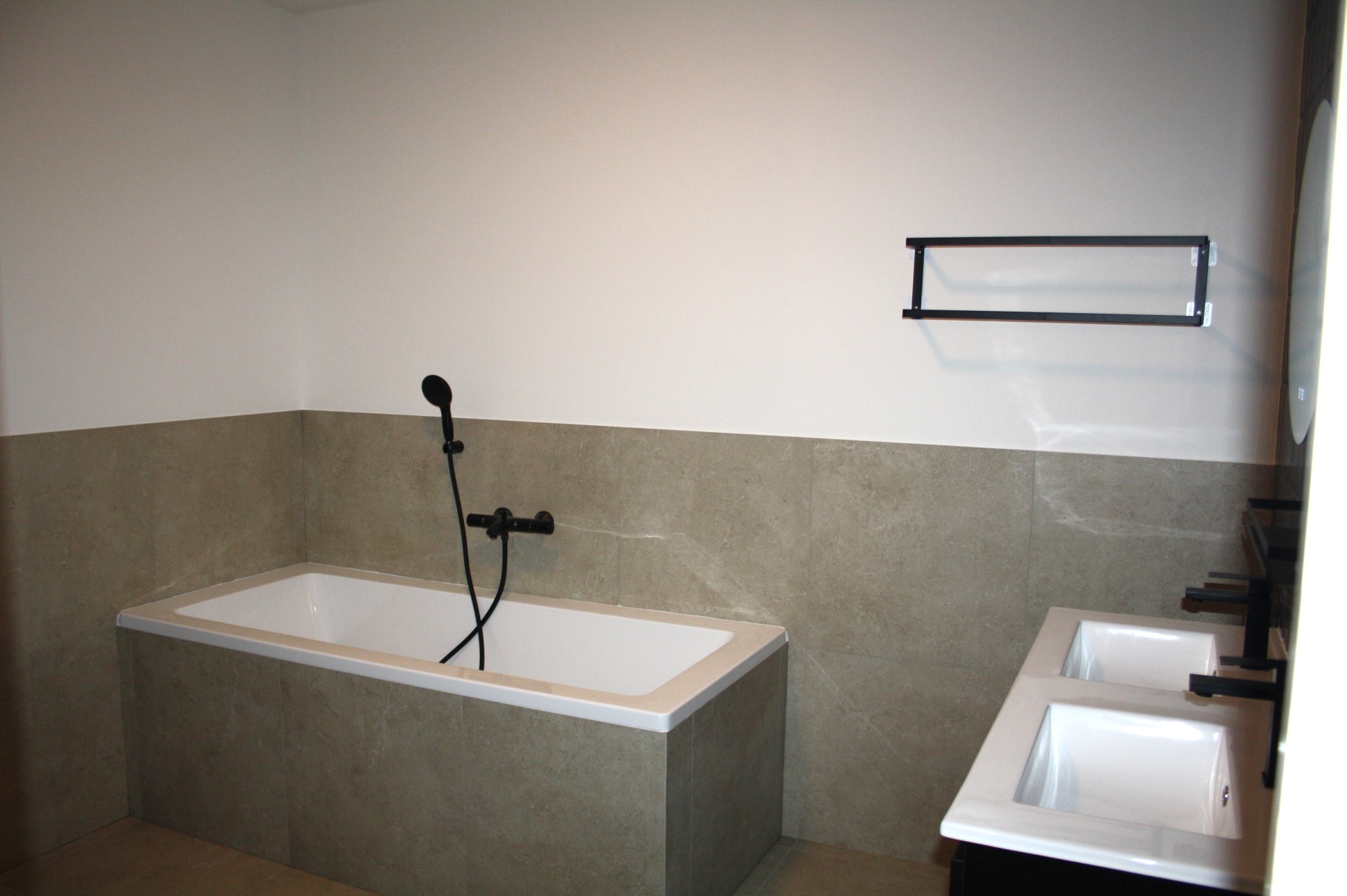Badkamer (circa 9m2), voorzien van douche met glazen douchedeur, 2e toilet, bad, badmeubel, dubbele wastafel.