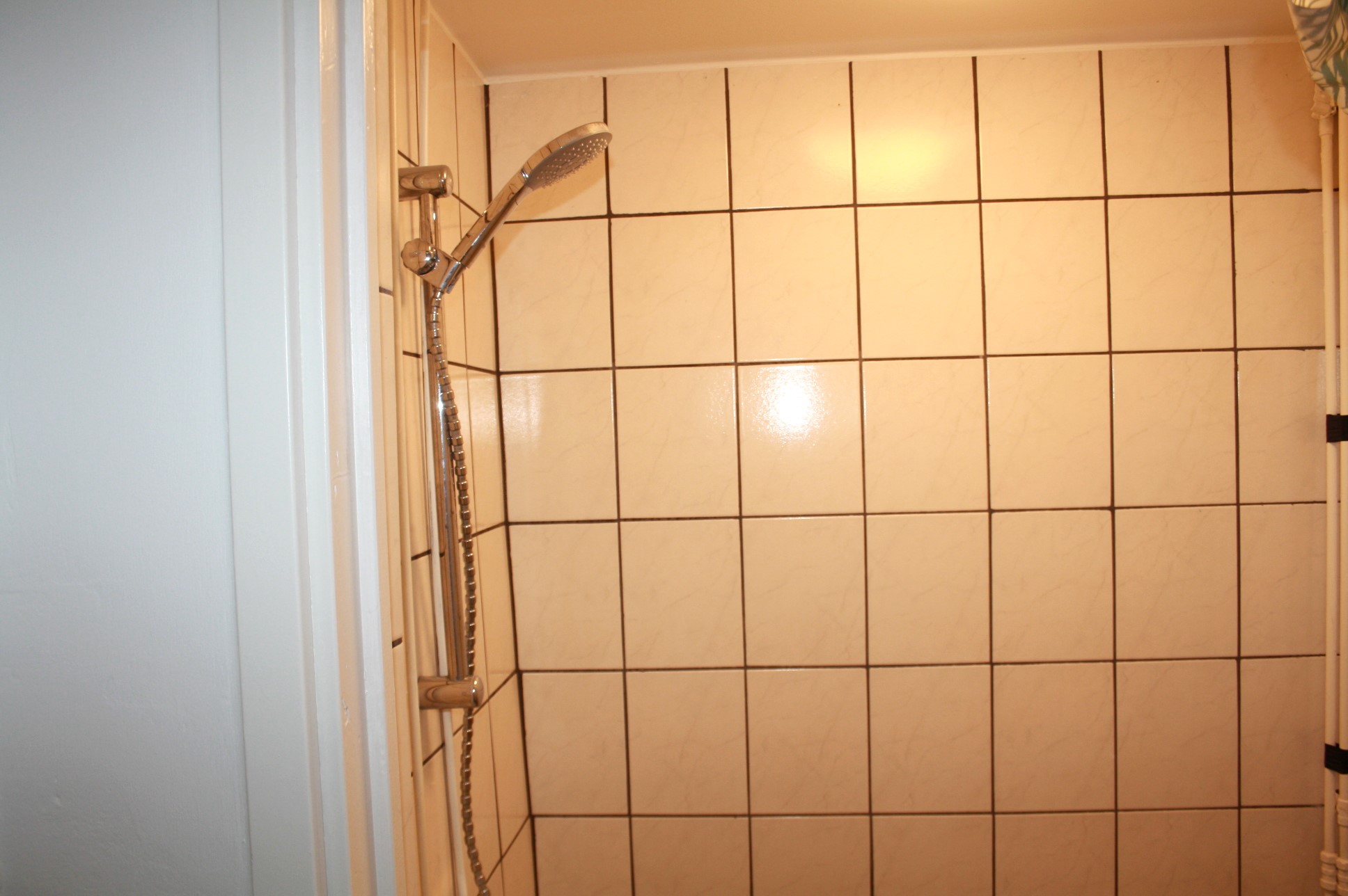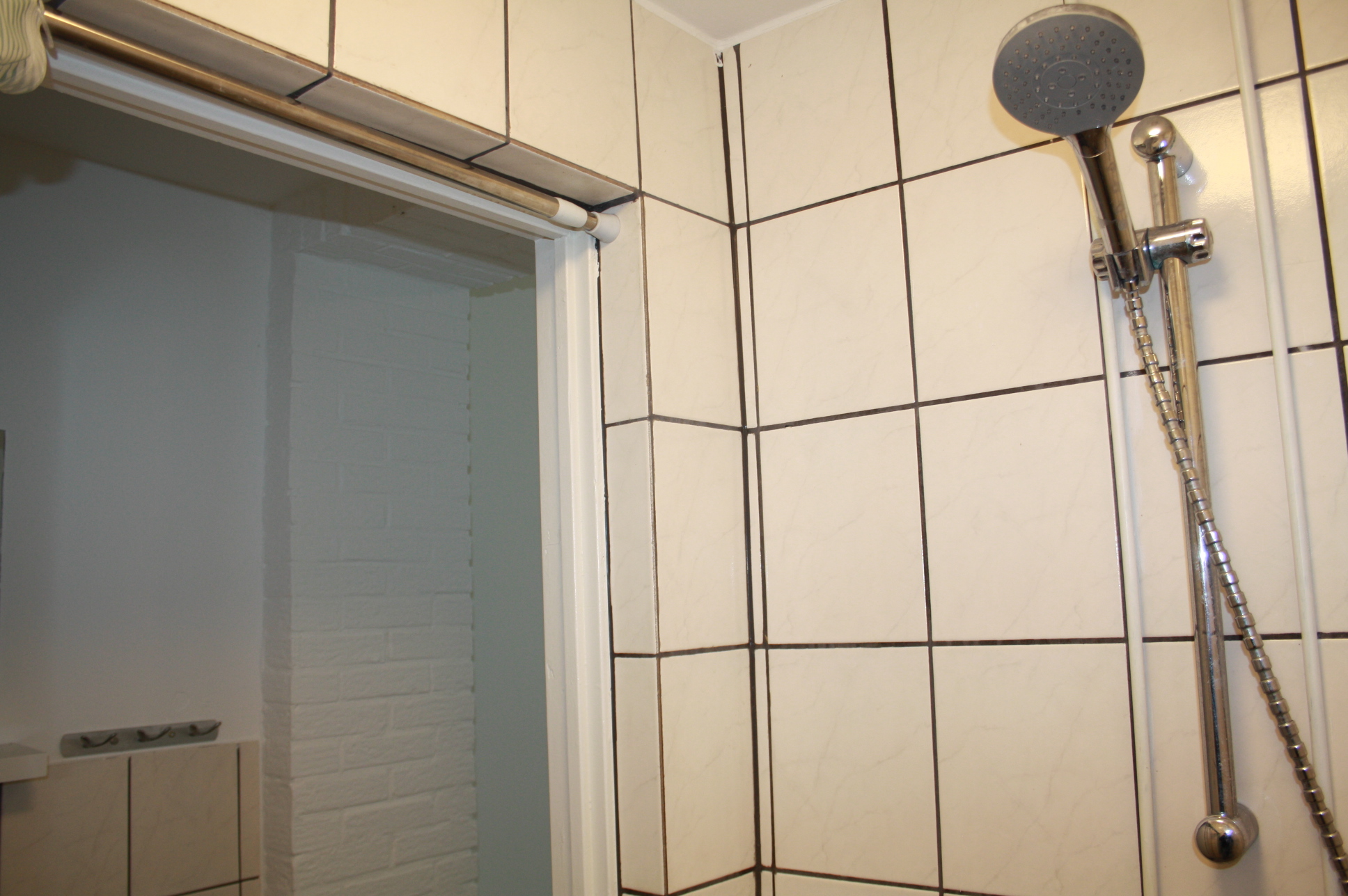 Hoofdentree met tegelvloer en toegang tot gemeenschappelijke wasruimte.