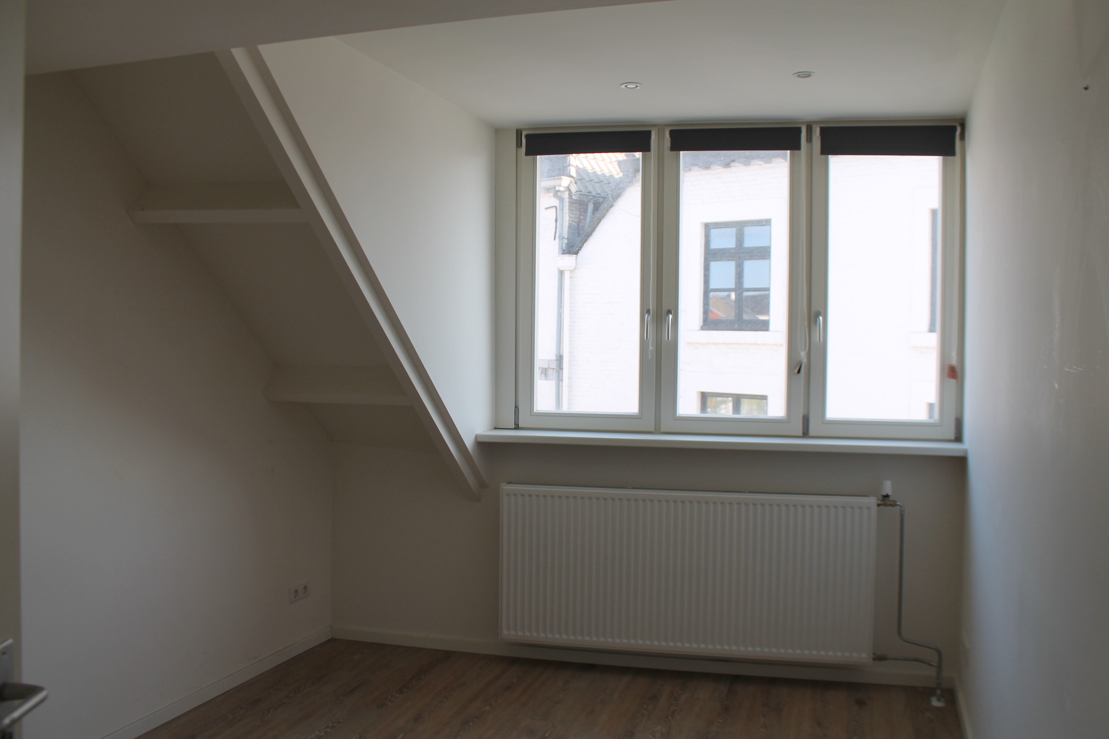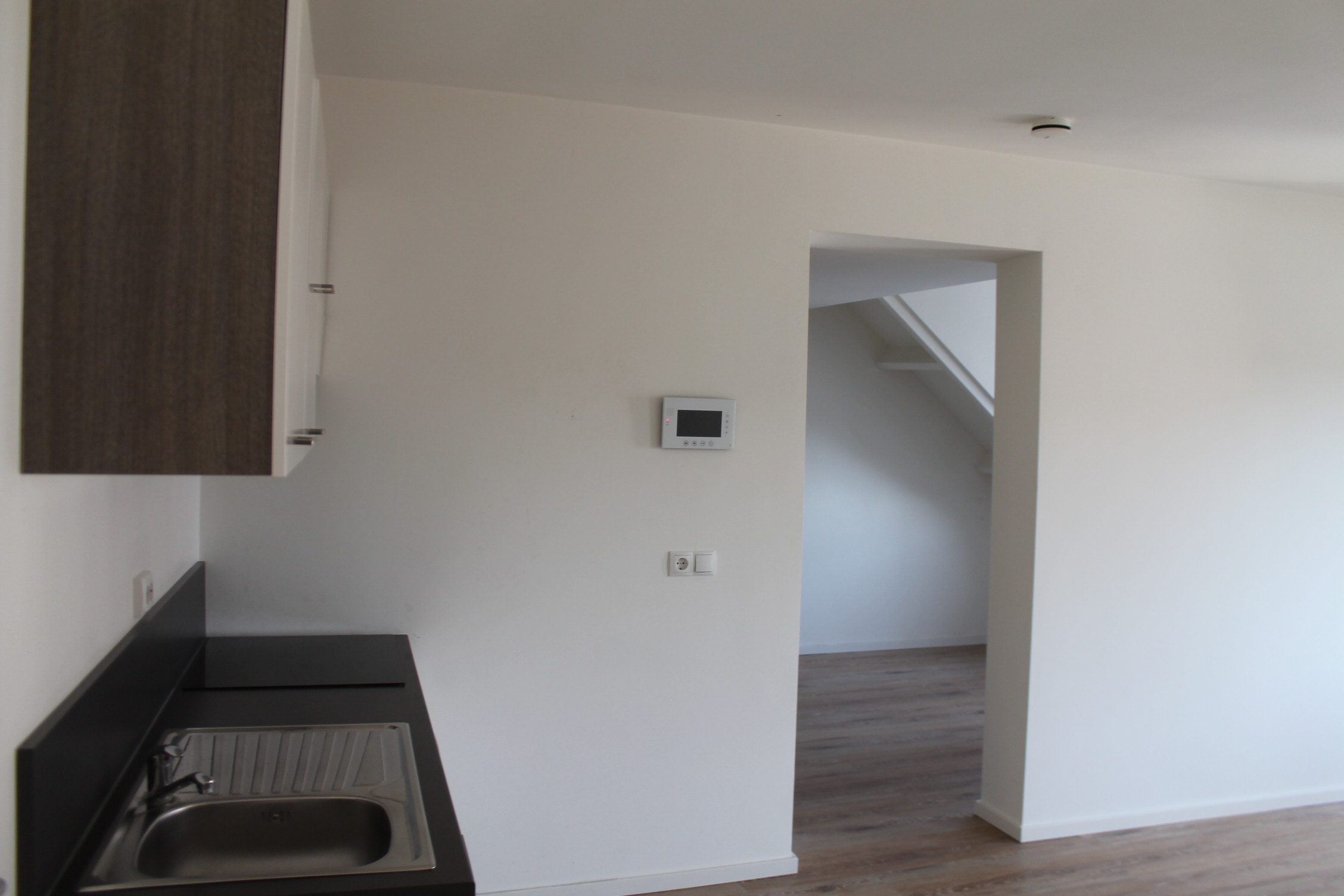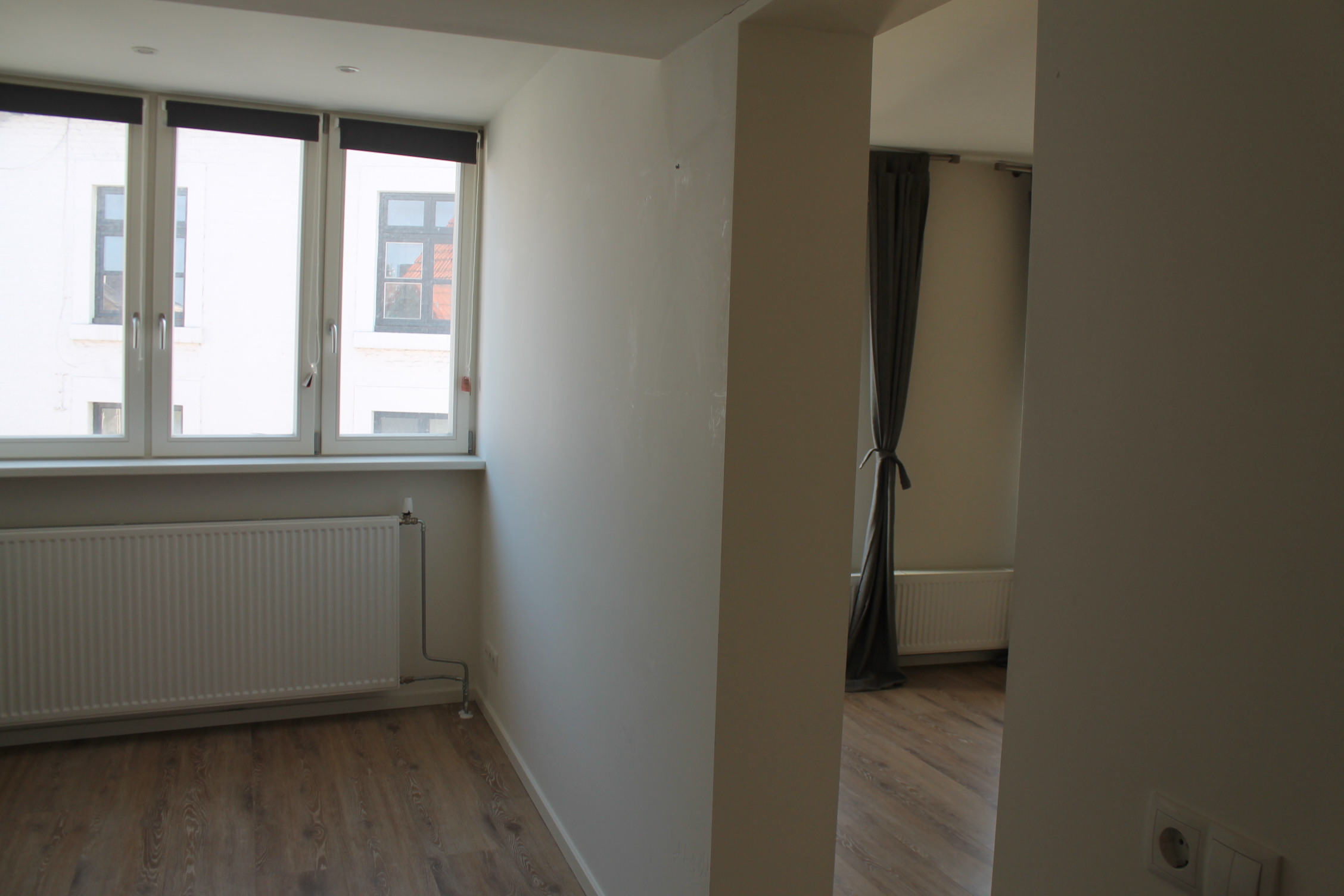 Woonkamer (3.81 x 5.00) met open keuken, laminaatvloer en uitzicht over de Markt. Moderne open keuken (ceramische kookplaat, afzuigkap, koelkast). Slaapkamer (4.00 x 2.80) v.v. laminaatvloer. Geheel en modern betegelde badkamer (1.10 x 3.57) voorzien van tegelvloer, douche met douchecabine, designradiator en badmeubel met verlichte spiegel.
