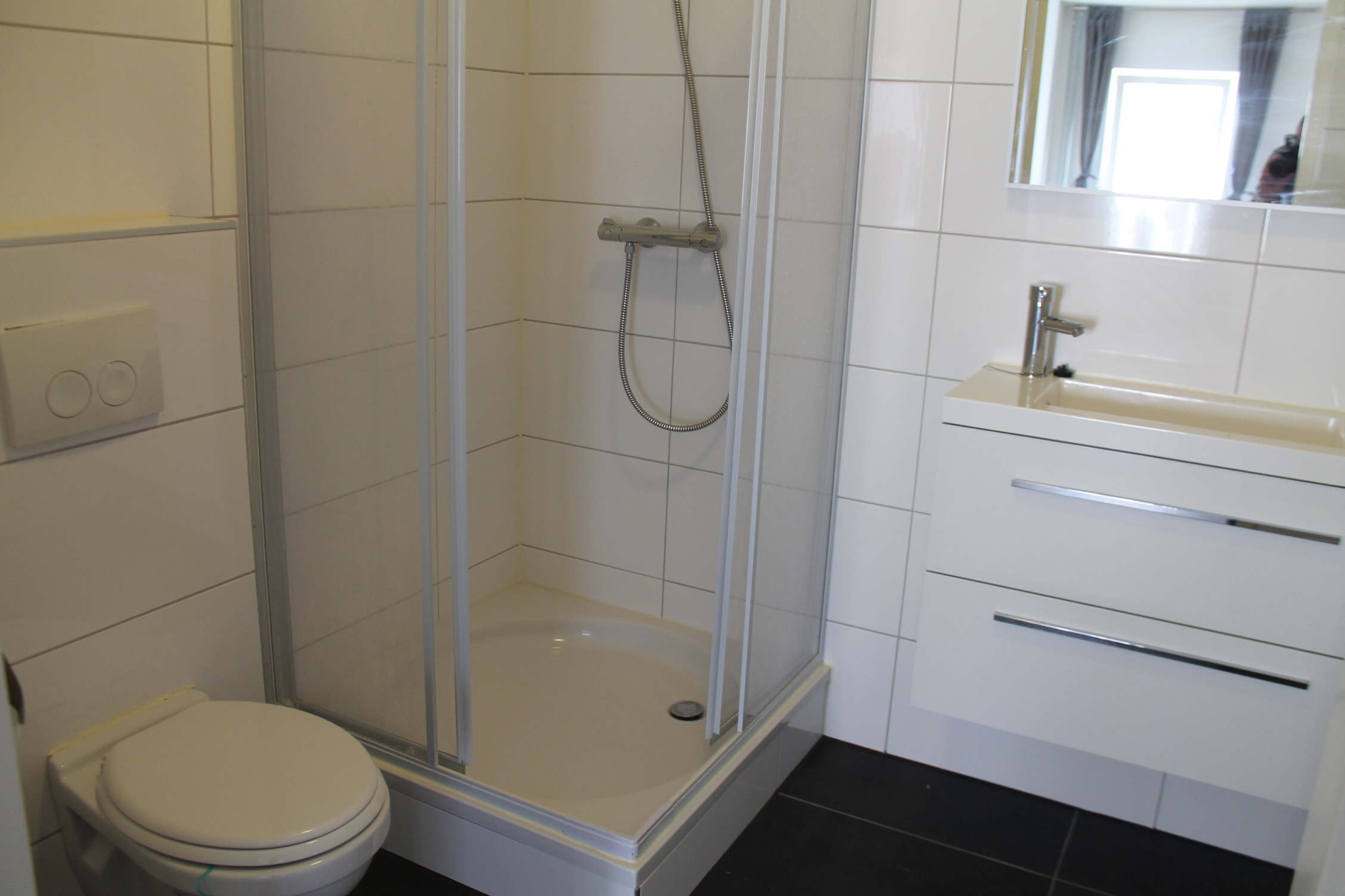 Geheel betegelde en gemeenschappelijke wasruimte welke is voorzien van een droger en een wasmachine (gemeenschappelijk gebruik bewoners).