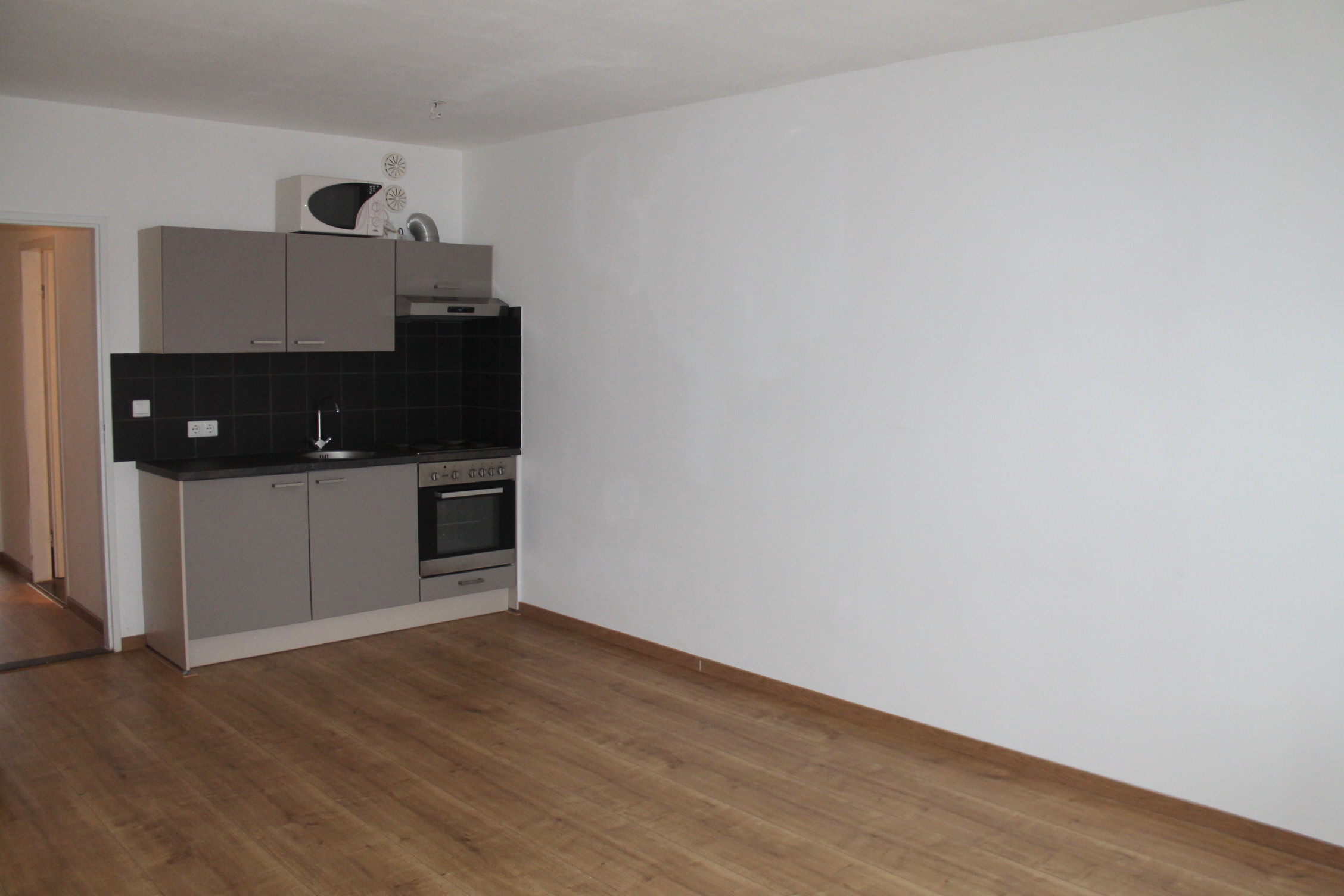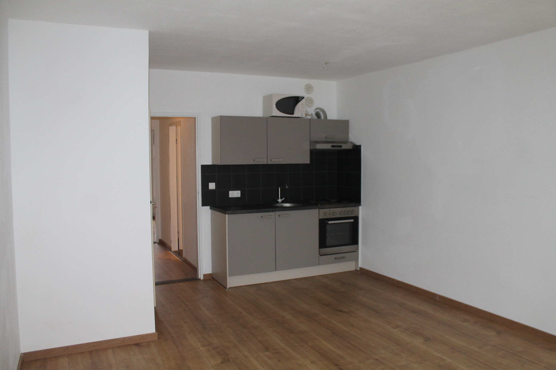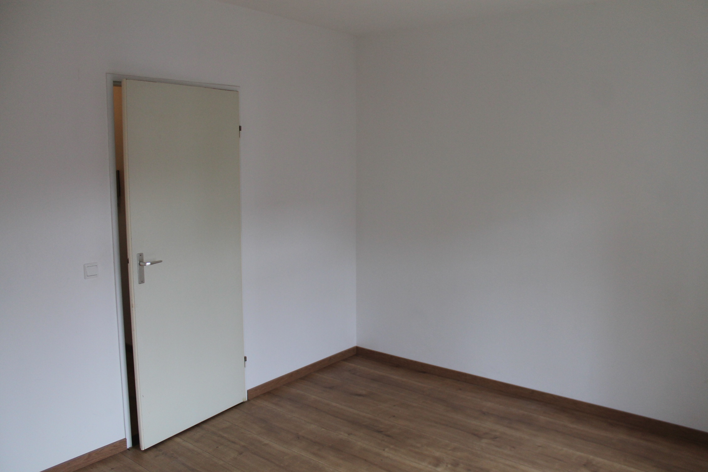Hal/entree (1.00 x 2.70). Vanuit de hal is de slaapkamer, badkamer en woonkamer te bereiken. L-vormige woonkamer (circa 21m2) v.v. open keuken en laminaatvloer. Keuken is v.v. een moderne aanbouwkeuken met apparatuur (4 pits elektrische kookplaat, afzuiging, oven en koelkast). Slaapkamer (4.16 x 3.25) v.v. laminaatvloer, aan de achterzijde van het pand gelegen.