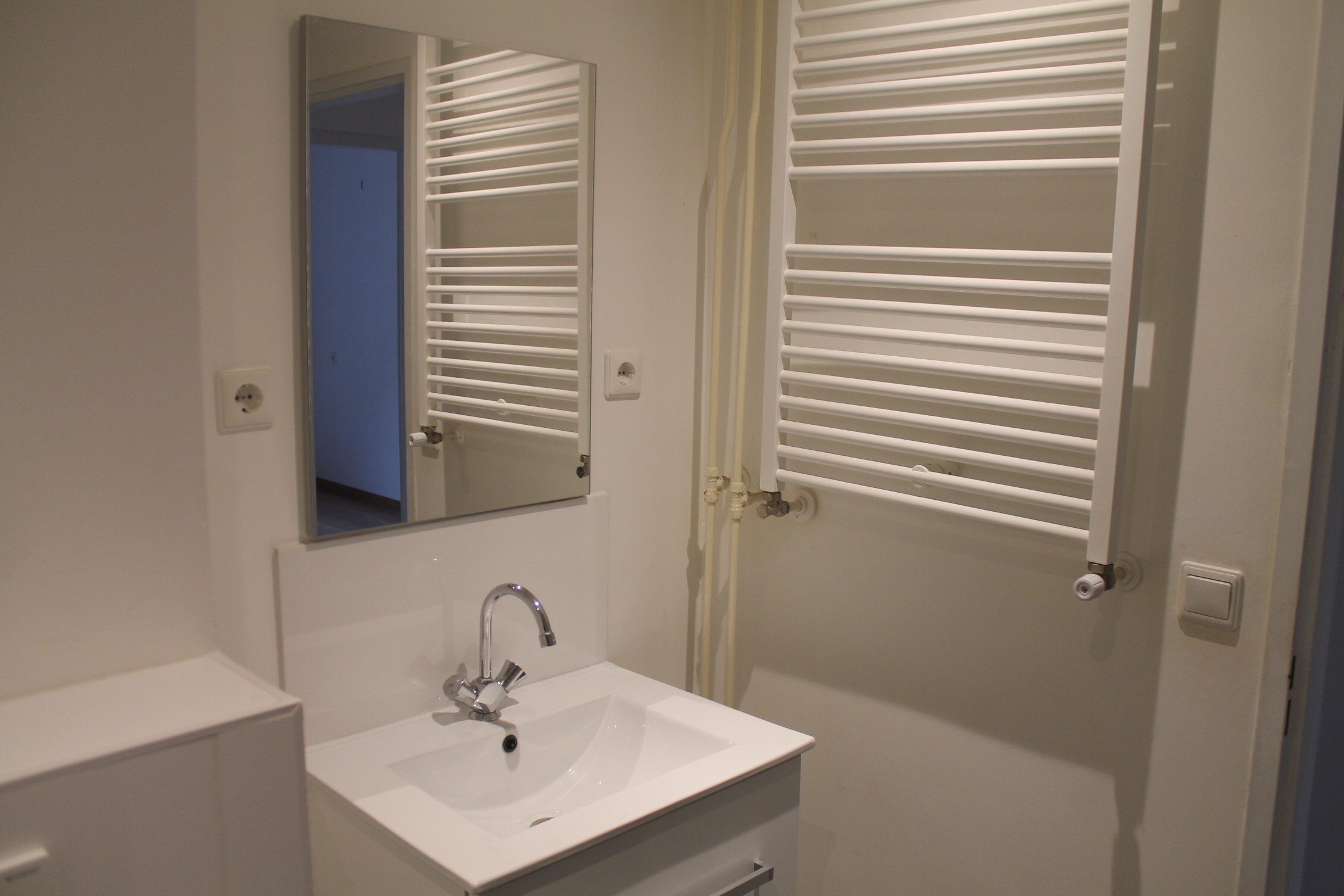Gemeenschappelijke entree v.v. tegelvloer. De hal geeft toegang tot het trappenhuis en de achtergelegen gemeenschappelijke binnenplaats. In deze entree zijn tevens voor iedere bewoner een eigen en afsluitbaar postvak voorzien. Ieder appartement /studio heeft zijn eigen elektrometer.