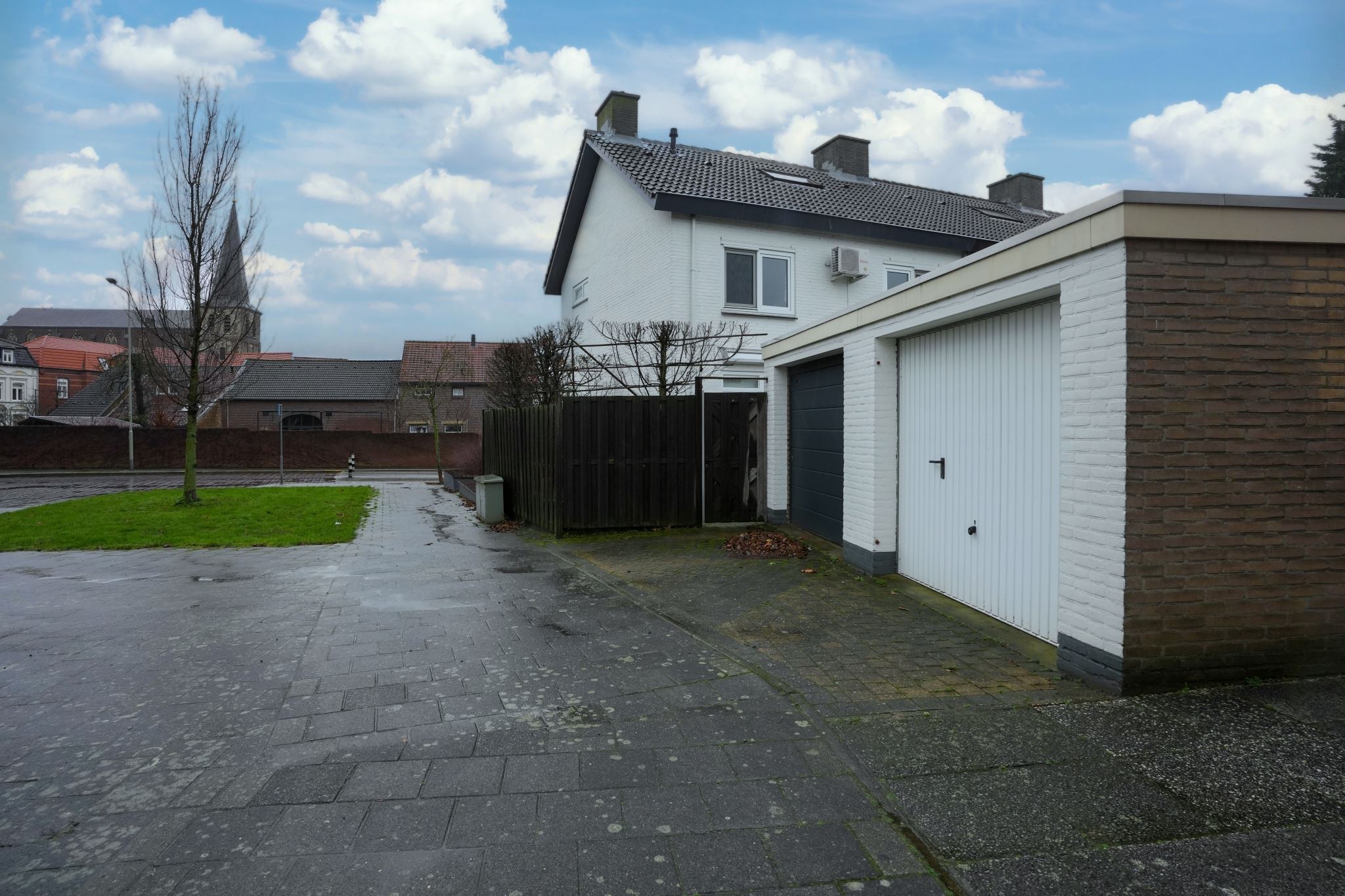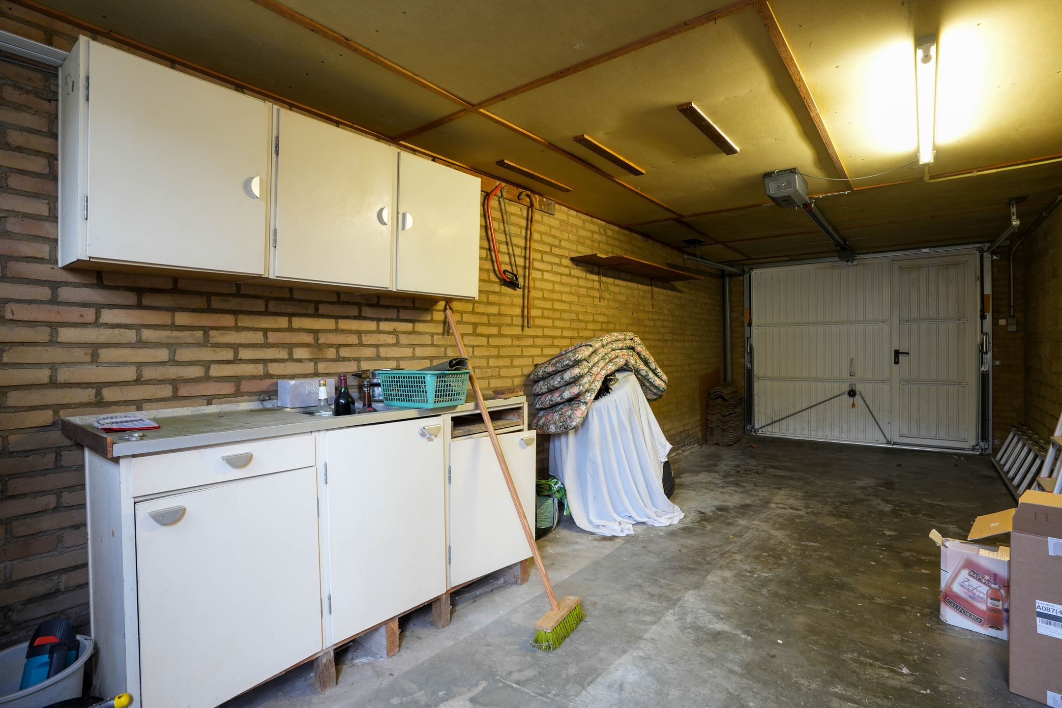 Via oprit te bereiken garage (7.35 x 3.04) met automatisch te bedienen poort met loopdeur. De garage komt uit in de tuin.